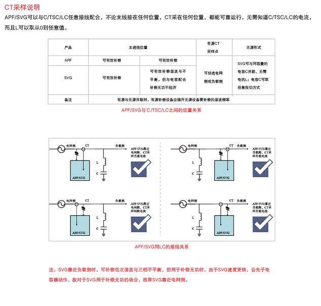 推荐采用CT采样电网侧电流,因为这样LC的控制器所计算的补偿效果是真实的补偿效果。如果CT采样负载侧电流。则虽然能协调工作,但是LC计算的补偿效果不包含SVG。